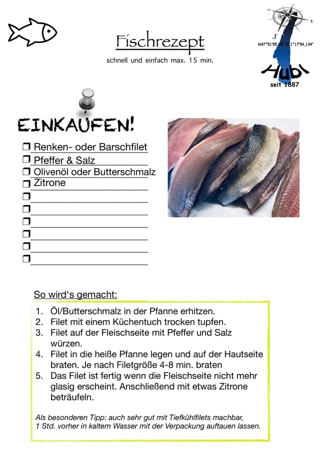 Frisch gefrosteter, küchenfertiger Fisch und Renkenfilet ist fast ganzjährig erhältlich.